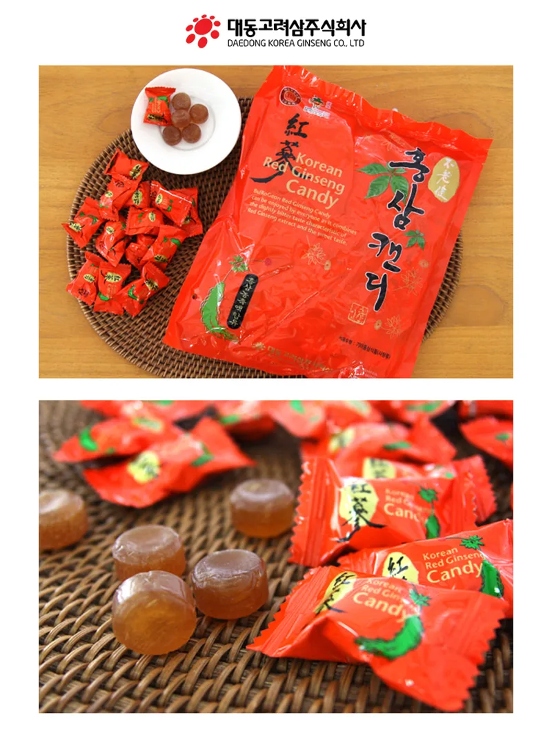 Kẹo Hồng Sâm: chiết xuất từ hồng sâm Hàn Quốc cùng các thành phần khác thơm ngon bổ dưỡng có tác dụng rất tốt cho cơ thể