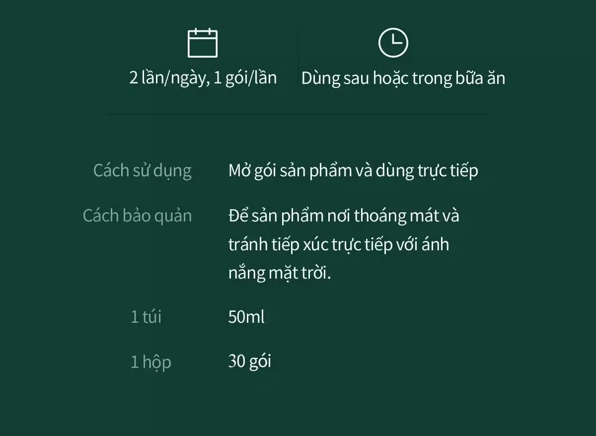 🗳 Quy Cách: Hộp 30 Gói x 50ml/Gói